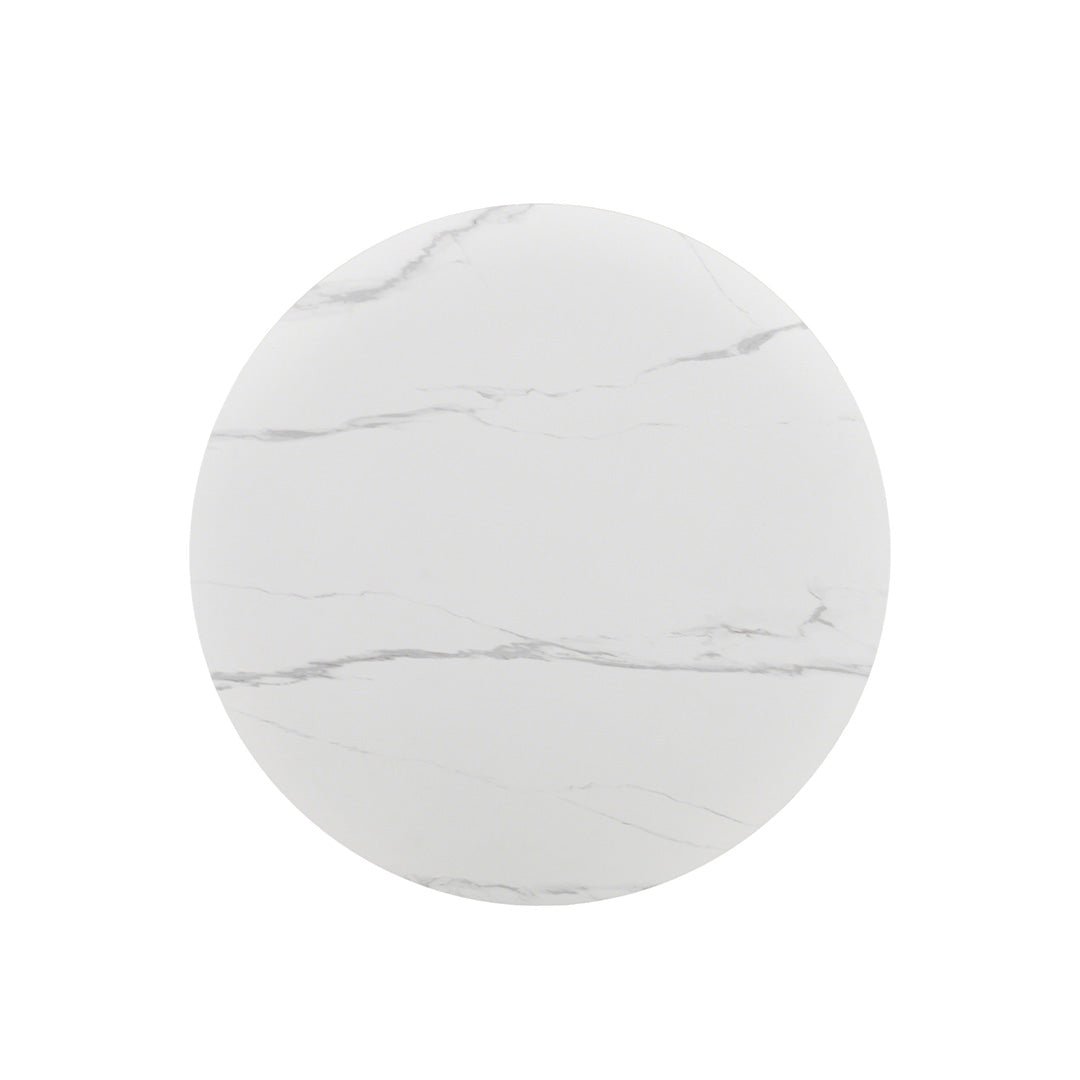De Eettafel Santiago Rond 120 cm voegt een warme en moderne uitstraling toe aan je eetkamer. Het ronde tafelblad is vervaardigd uit bruin woodvineer en afgewerkt met een elegante witte marmerlaag. De combinatie van rijke houttinten en het frisse marmer geeft de tafel een luxe en evenwichtige uitstraling.