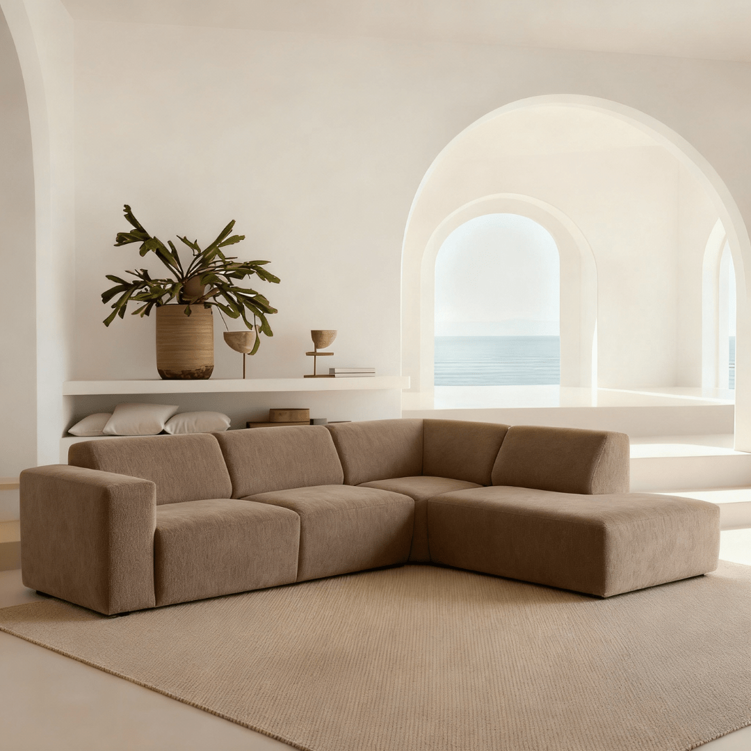 De Hoekbank Isabel 4-zits Rechts Taupe brengt een royaal en eigentijds karakter in je woonkamer. De bank is bekleed met Vinci stof in een zachte taupetint, waardoor het geheel een warme en verfijnde uitstraling krijgt. De ruime zitkussens en comfortabele rugleuning bieden veel ondersteuning en maken de Isabel een fijne plek om te ontspannen.