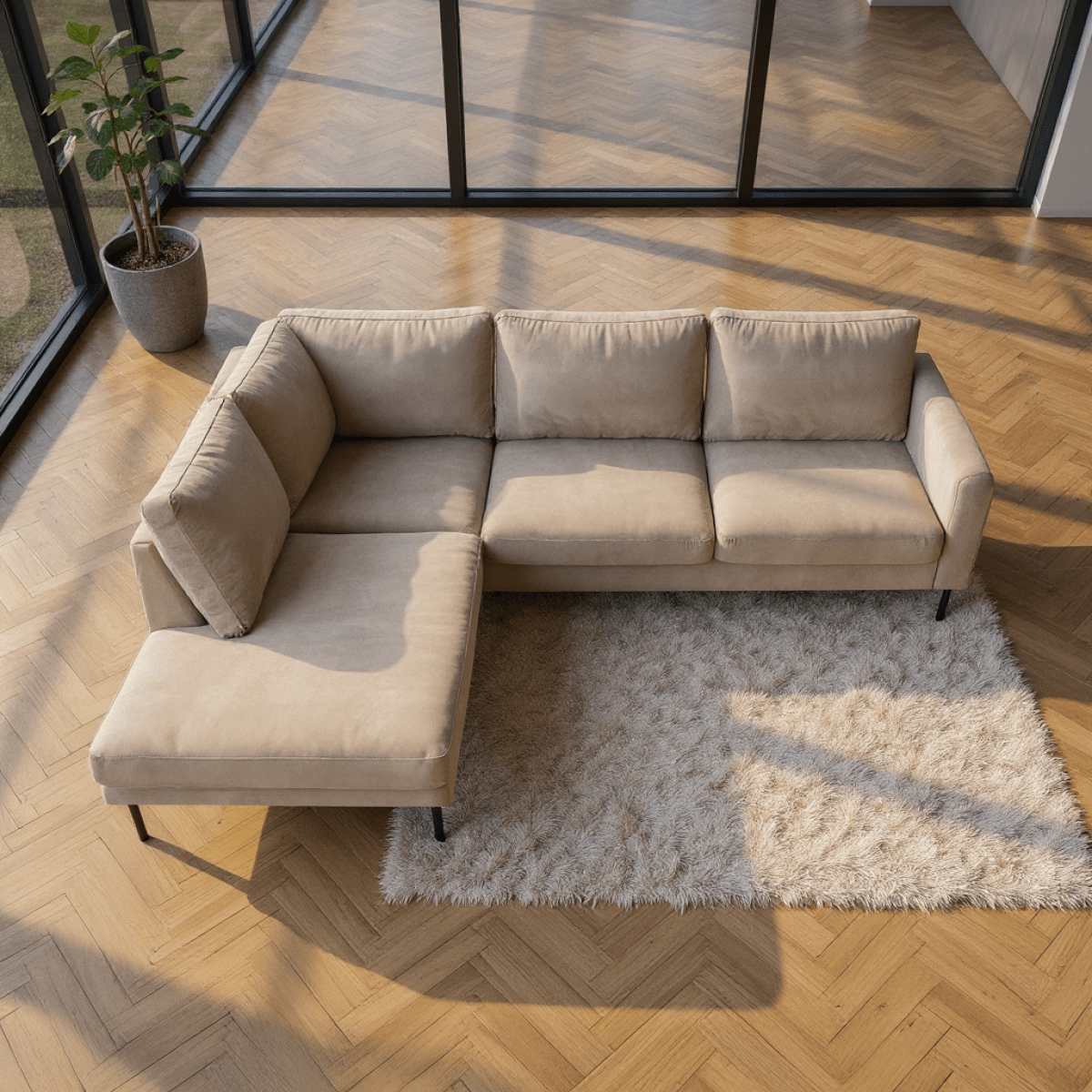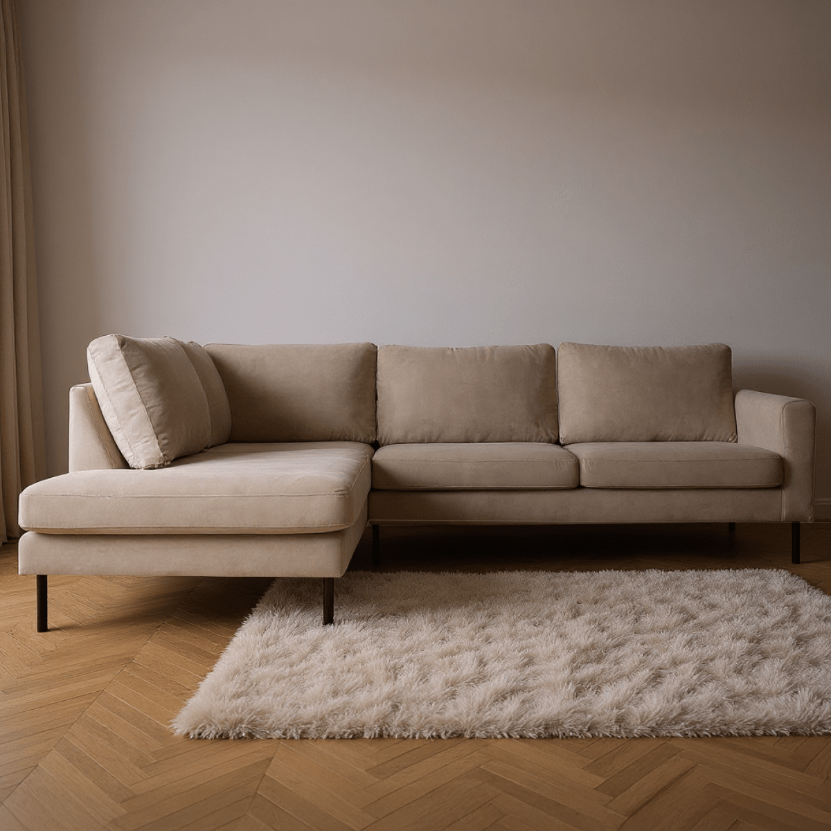 Breng warmte en elegantie in je interieur met hoekbank Malaga. Deze moderne L-vormige bank straalt klasse uit en biedt royaal comfort voor het hele gezin. Dankzij de zachte velours bekleding en het strakke design is Malaga dé eyecatcher in elke woonkamer.