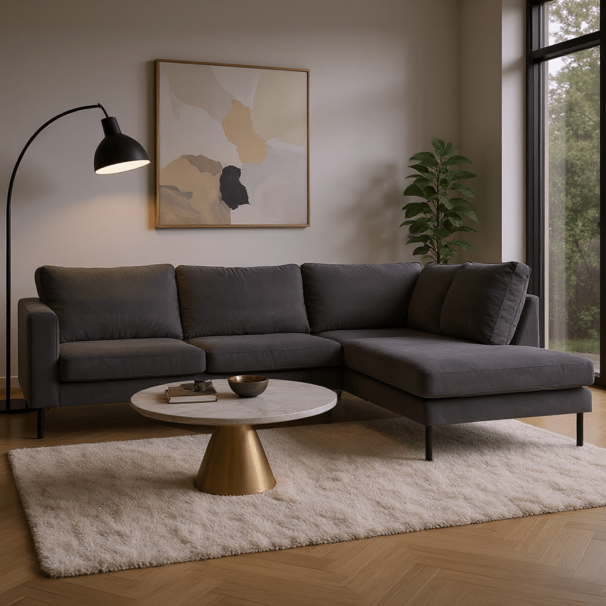 Verkrijgbaar in drie populaire kleuren: antraciet, beige en groen, past deze bank moeiteloos bij verschillende woonstijlen, van industrieel tot modern en Scandinavisch.
