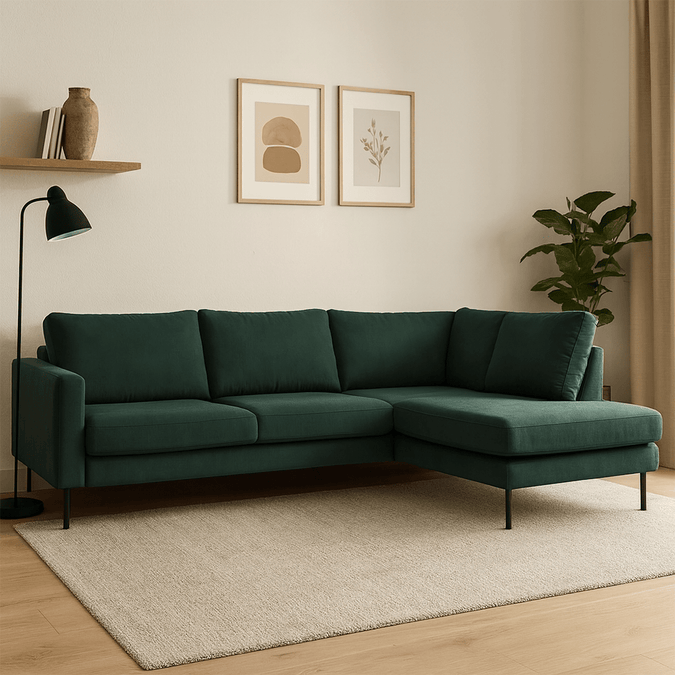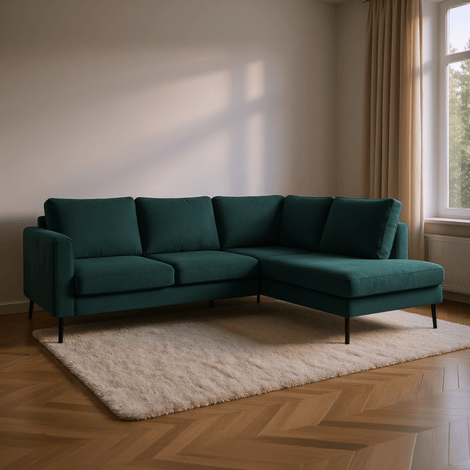 Breng warmte en elegantie in je interieur met hoekbank Malaga. Deze moderne L-vormige bank straalt klasse uit en biedt royaal comfort voor het hele gezin. Dankzij de zachte velours bekleding en het strakke design is Malaga dé eyecatcher in elke woonkamer.