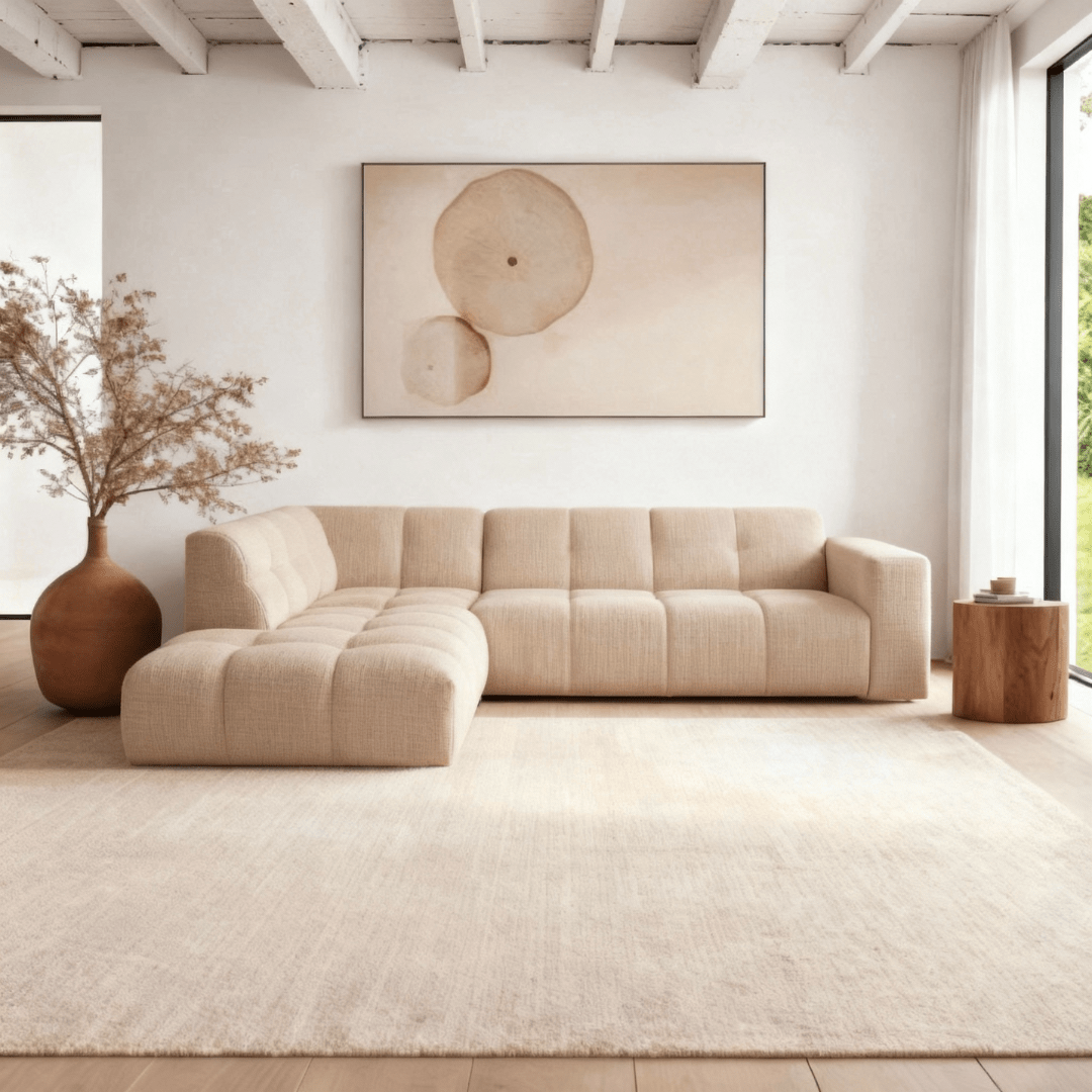 De Hoekbank Noah 4-zits Links Crème Mahom is een stijlvolle en comfortabele toevoeging aan je woonkamer. De bank is bekleed met zachte Vinci stof in een rustige crèmekleur, wat zorgt voor een frisse en moderne uitstraling. De royale zitting en het uitnodigende ontwerp maken deze bank ideaal voor ontspannen momenten thuis.