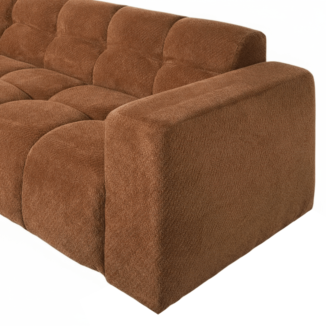 De Hoekbank Noah 4-zits Links Koper Mahom is een moderne en comfortabele loungebank met een warme, eigentijdse uitstraling. De bank is bekleed met Vinci stof in een rijke koperkleur, wat zorgt voor een luxe en sfeervol accent in je woonkamer. De zachte bekleding en royale zitting maken de Noah tot een ideale bank voor lange avonden ontspannen zitten.