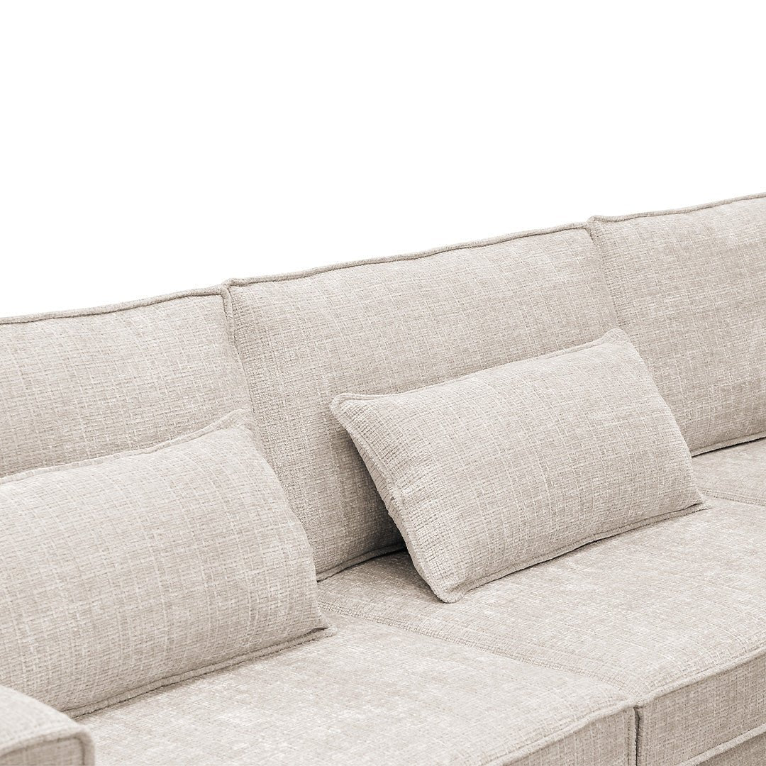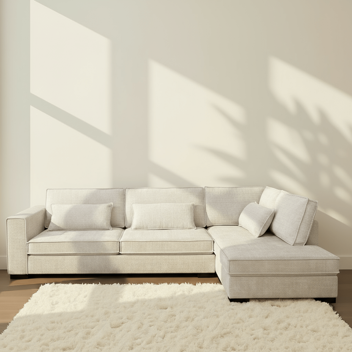 Hoekbank Nova 4-zits Rechts Crème is een elegante en comfortabele bank die moeiteloos in elk interieur past. Bekleed met zachte Cremona-stof in een tijdloze crème kleur, straalt deze hoekbank zowel warmte als stijl uit.