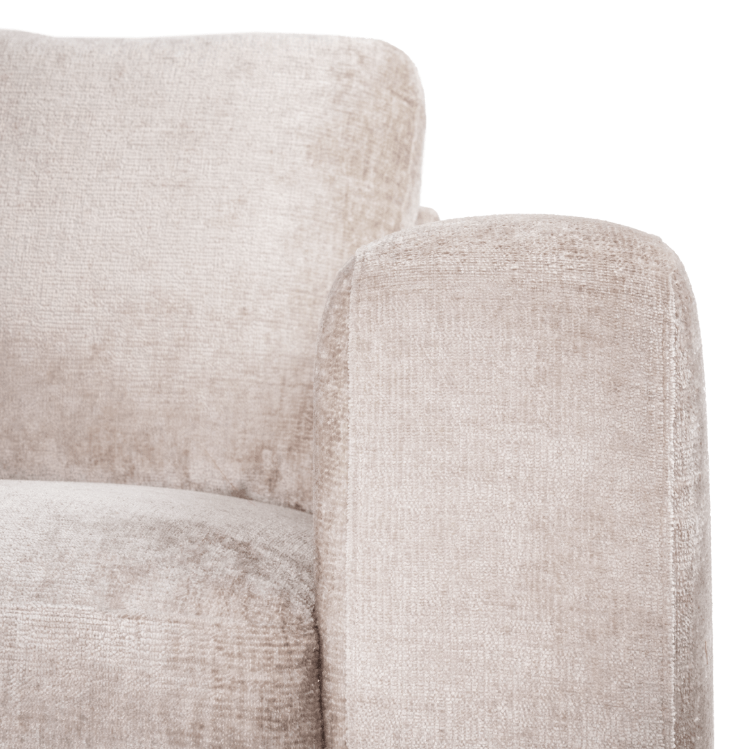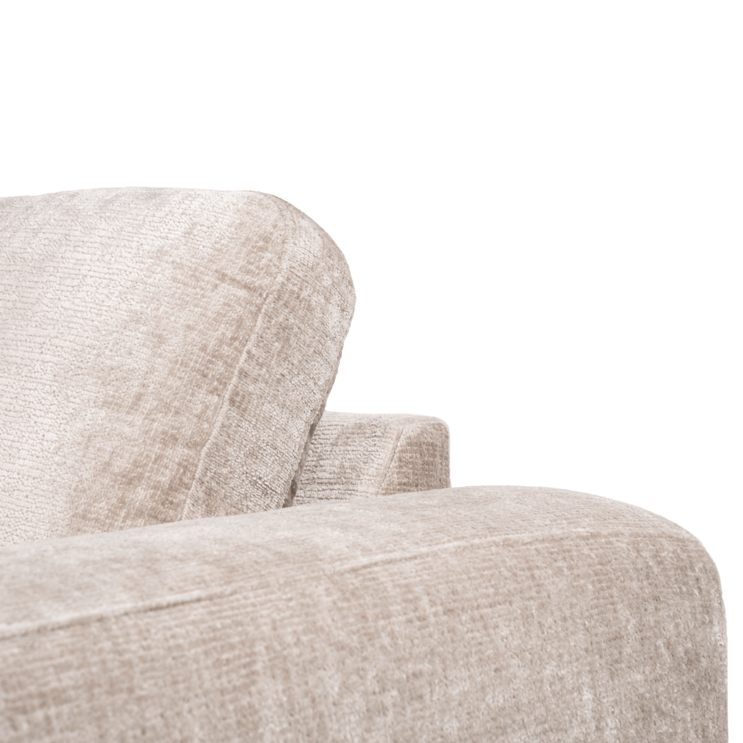 De 4-zits hoekbank Rosalie links in champagne is een stijlvolle en comfortabele toevoeging aan je woonkamer. De zachte champagne kleurige bekleding straalt rust en elegantie uit, waardoor de bank moeiteloos past binnen diverse interieurstijlen, van modern tot klassiek.
