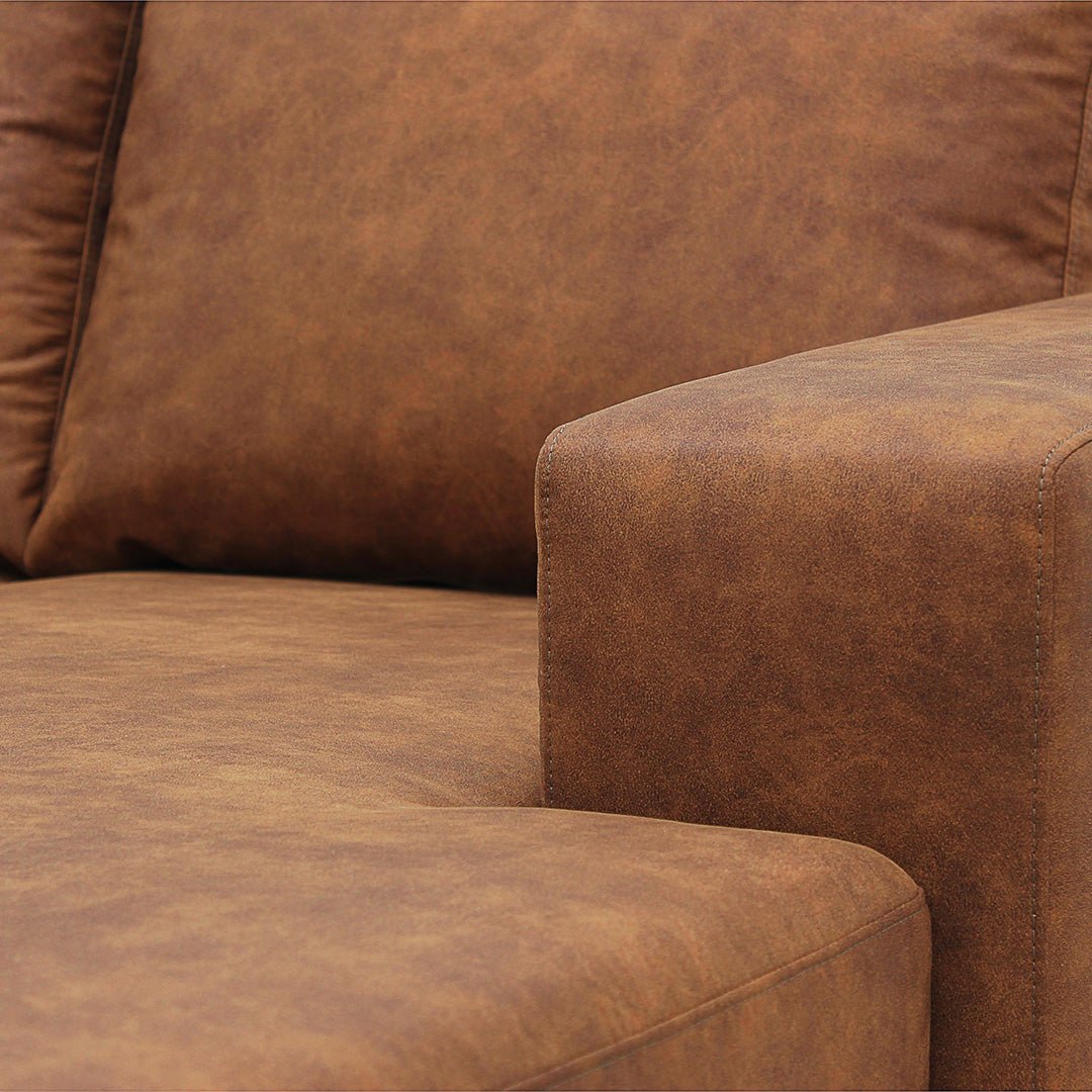 Hoekbank Santiago 4-zits U-opstelling Links Cognac brengt sfeer en comfort in je woonkamer. De bank is uitgevoerd in Preston-stof in een warme cognac kleur, wat zorgt voor een stijlvolle en uitnodigende uitstraling.