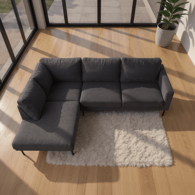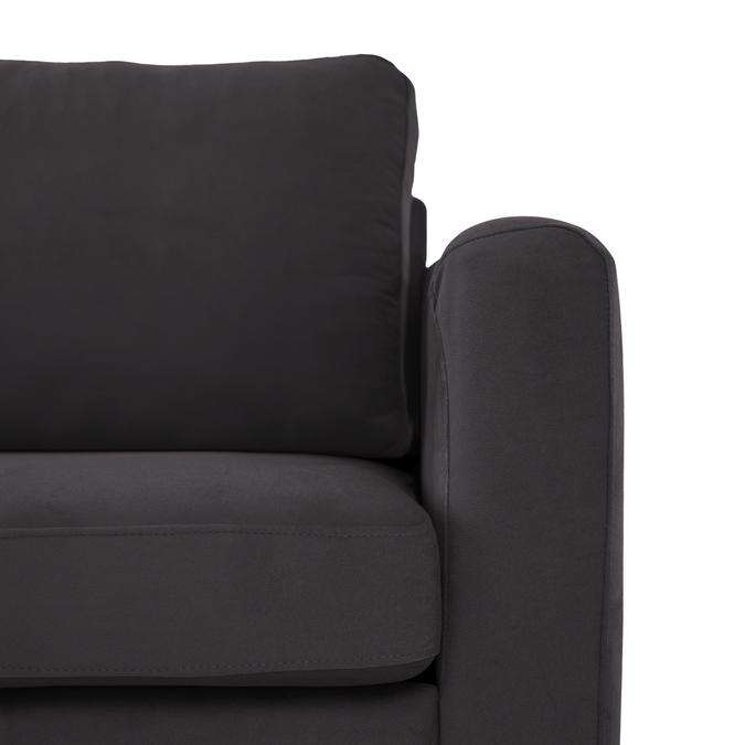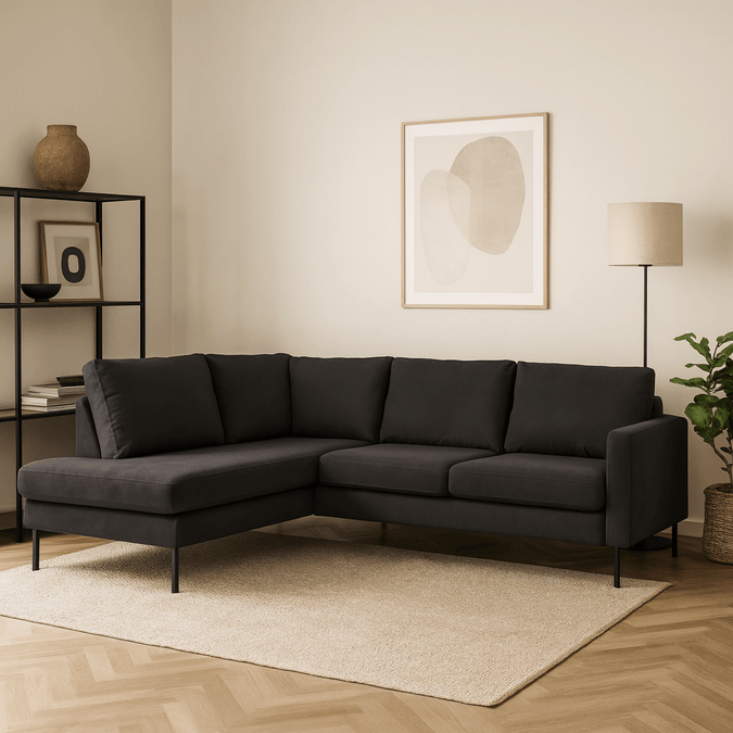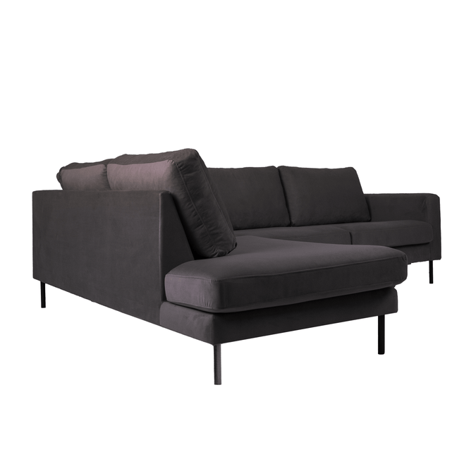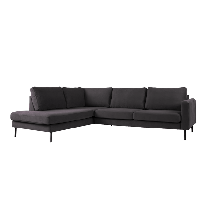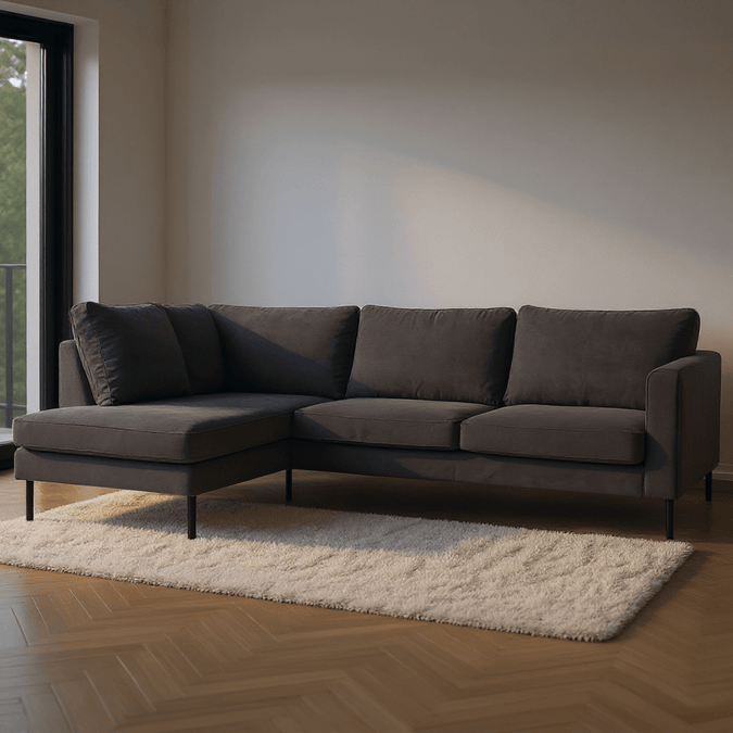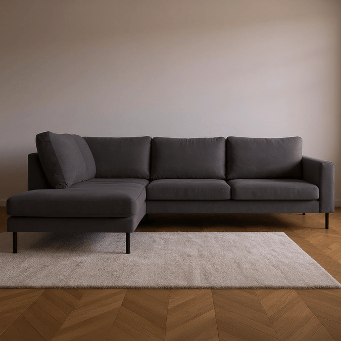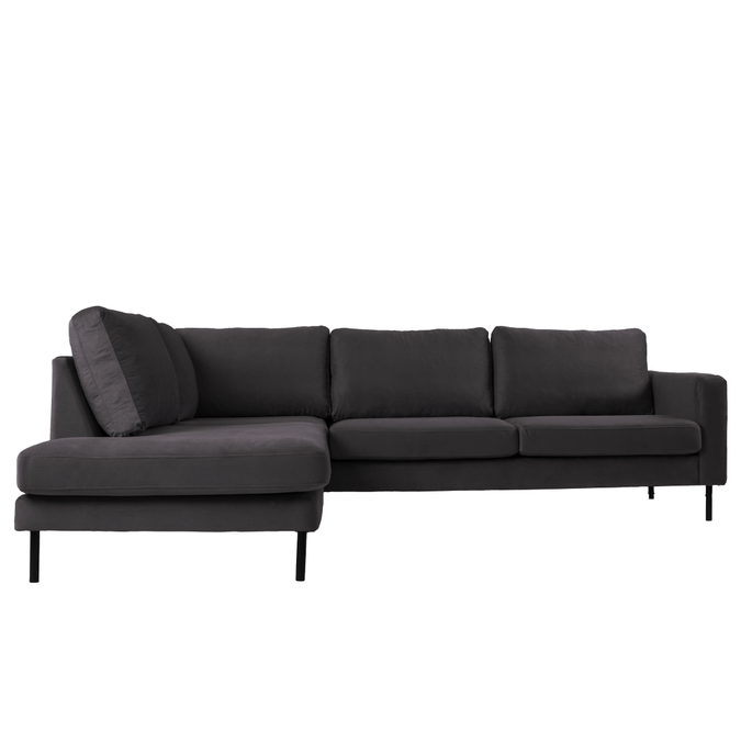 Breng warmte en elegantie in je interieur met hoekbank Sterre. Deze moderne L-vormige bank straalt klasse uit en biedt royaal comfort voor het hele gezin. Dankzij de zachte velours bekleding en het strakke design is Sterre dé eyecatcher in elke woonkamer.