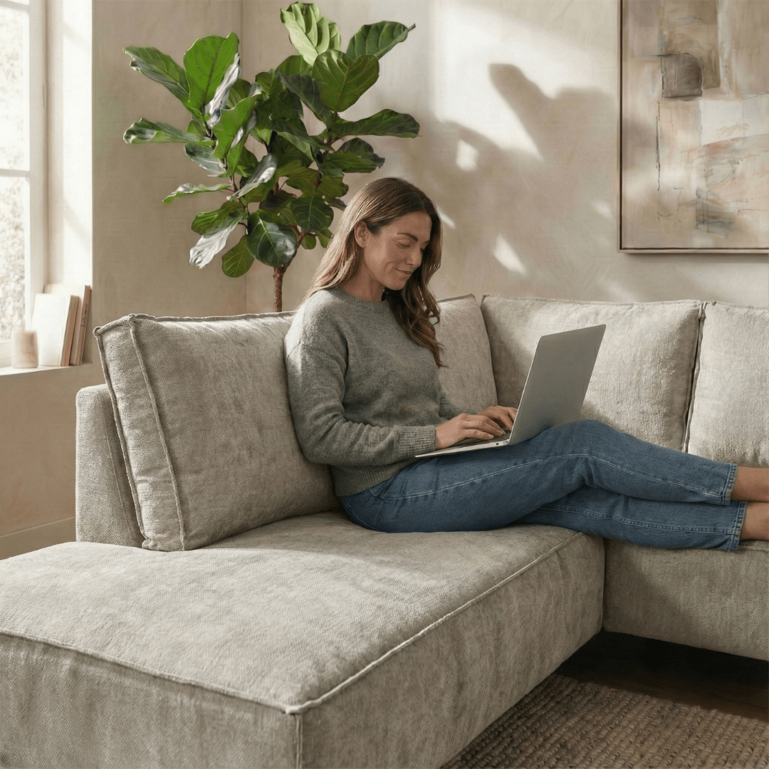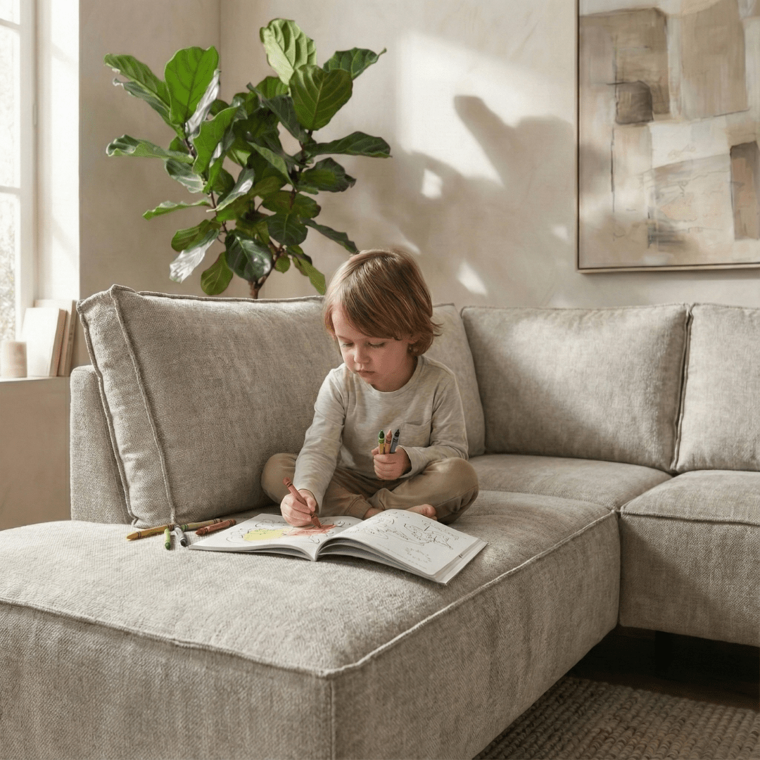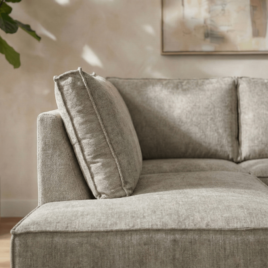 Dankzij het royale zitvlak biedt deze 4-zits bank voldoende ruimte voor het hele gezin. De longchair aan de linkerzijde nodigt uit om heerlijk te ontspannen, terwijl de stevige rugkussens optimale ondersteuning geven. De elegante, grijze stof voelt zacht aan en is bovendien slijtvast en onderhoudsvriendelijk – ideaal voor dagelijks gebruik.