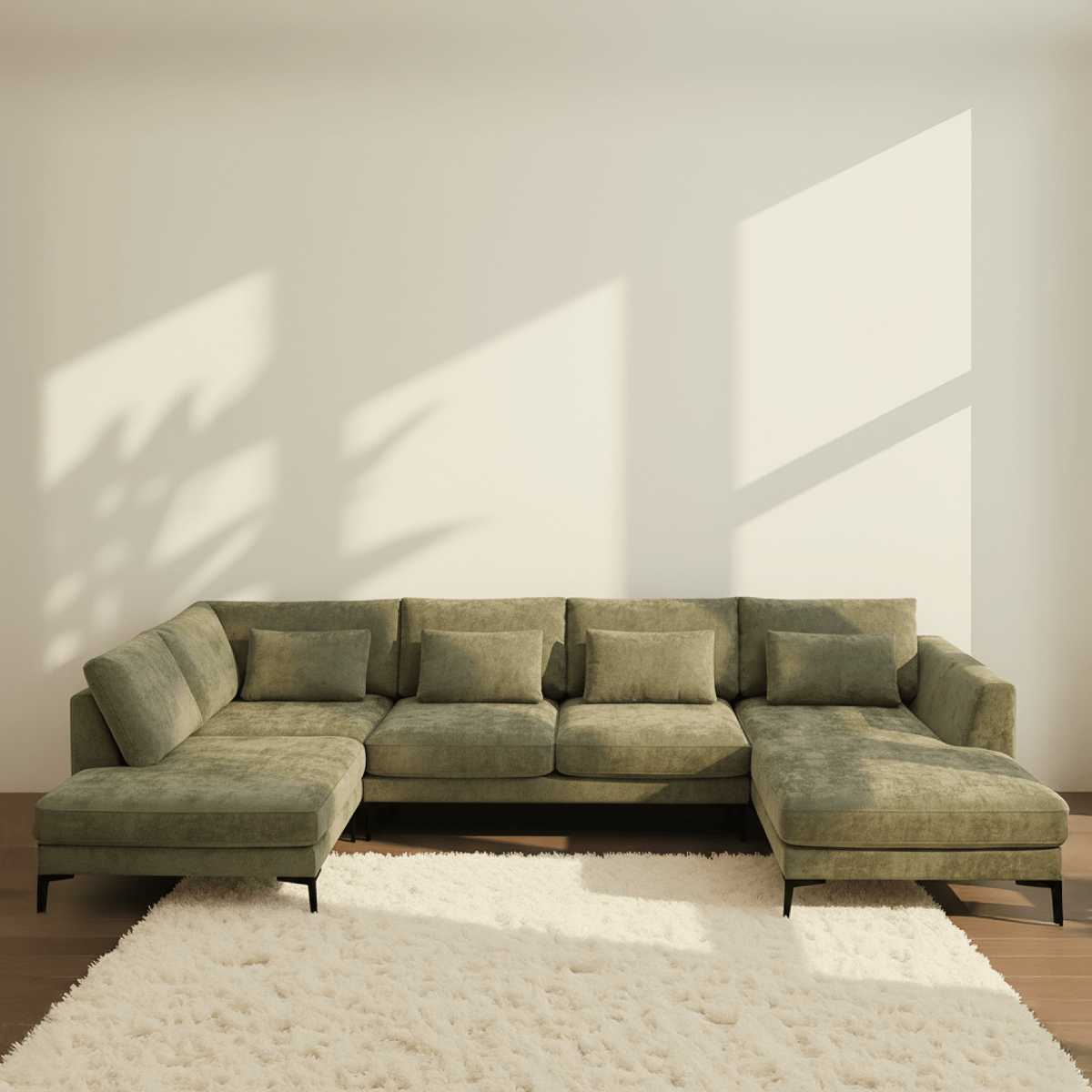 Met een lengte van 339 cm en een breedte van 101 cm / 169 cm / 208 cm biedt deze U-opstelling volop ruimte voor het hele gezin of voor gezellige avonden met vrienden. De hoogte van 87 cm zorgt voor comfortabele steun en een ontspannen zitervaring. Dankzij de hoek aan de linkerzijde komt de bank perfect tot zijn recht in diverse woonruimtes.